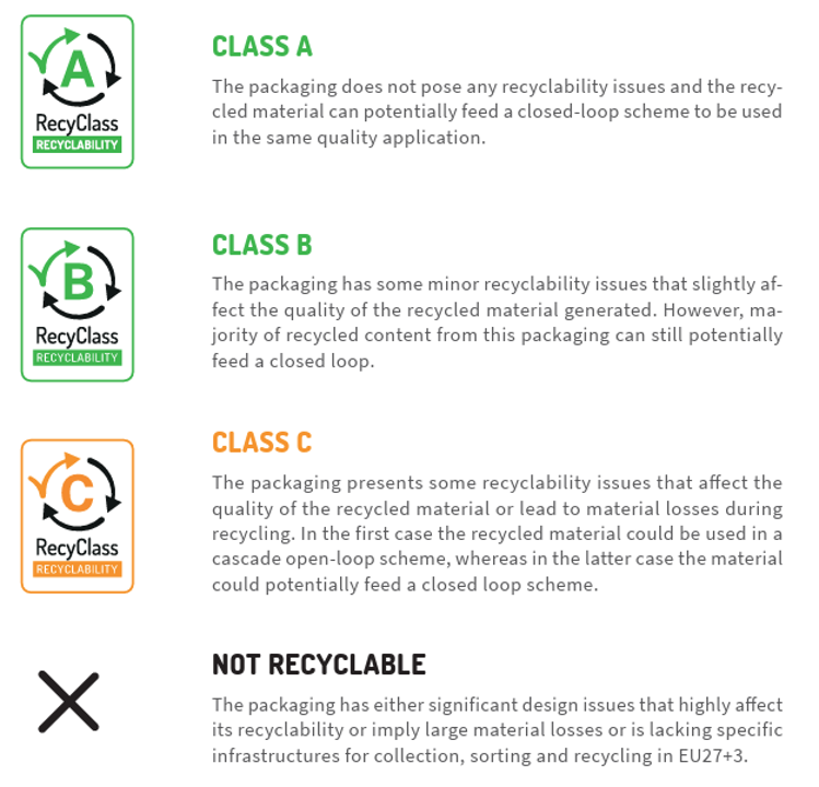 RecyClass 是由歐洲塑料回收協會(Plastics Recyclers Europe)發起的非營利性認證計劃,旨在提升塑料包裝的可回收性與再生塑料使用透明度。